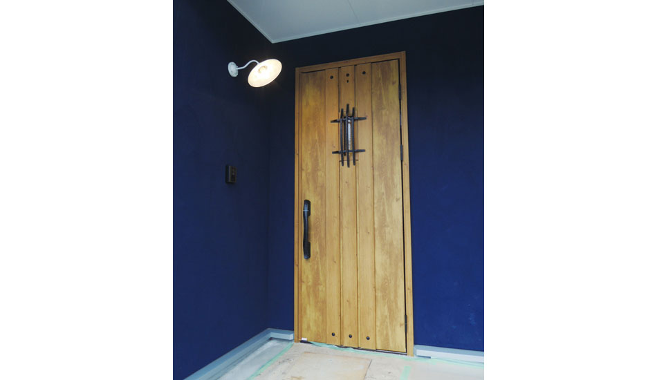 「地下収納がある塗り壁の家」