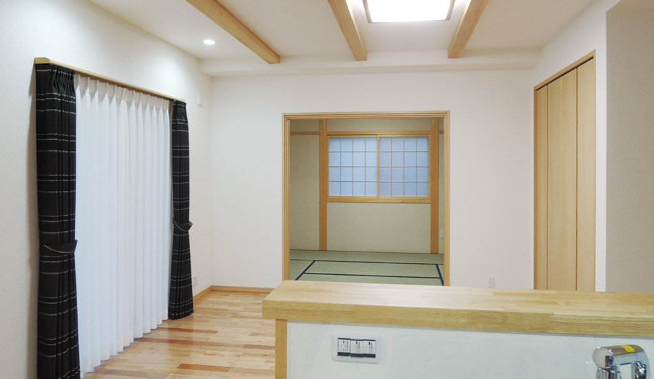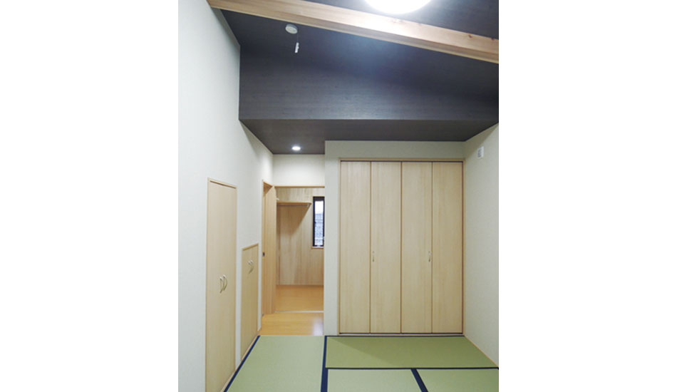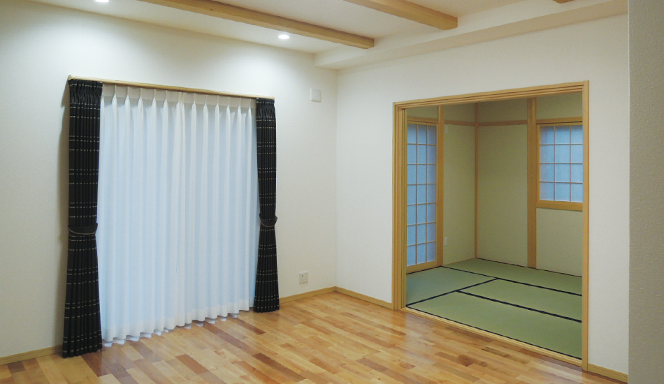 新しい家の寝室は畳にこだわりました。子供達がどんなに転がろうとも安心できます。洗濯物も広げてゆっくり畳めそうです。あと、急遽、間取りの変更や、フローリングや扉の変更などもお願いし、打合せも細かく確認してもらいました。見積もりの時に決めた事って、忘れてしまってるんです。全部受け入れていただき、とっても満足です。マンションの時、部屋が狭くて親に泊まってもらう事ができなくて、寂しい気持ちになりましたが、新居では、ゆっくり過ごしてもらえます。やっと、ゆっくり来てもらえる。それが一番うれしいです。